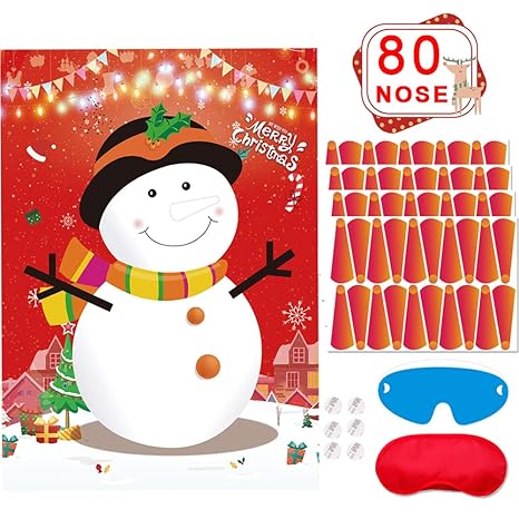 Hokic Pin The Nose On The Snowman Christmas Games For Christmas Decorations Kids Birthday New Year Eve Party Supplies Large Christmas Snowman Poster